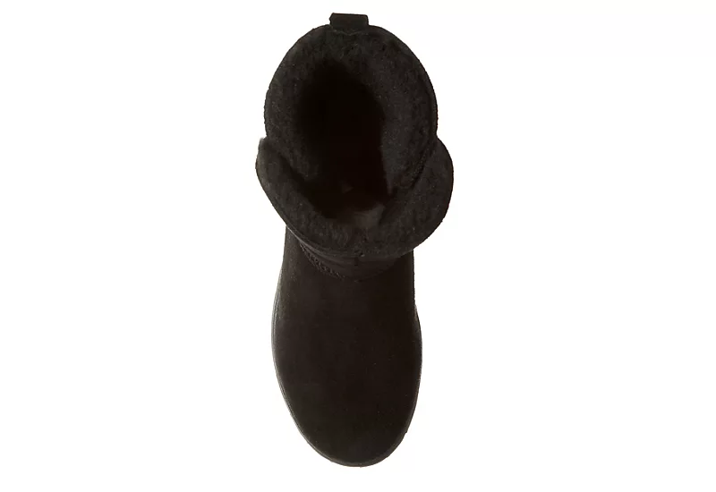 Snap into the Wellston women’s fur boot from Bearpaw. With a suede upper accented with a side snap buckle, this boot goes on extra cozy with fluffy wool blend lining. Pull on quickly with the rear pull tab and the sheepskin comfort footbed keeps your feet feeling good.