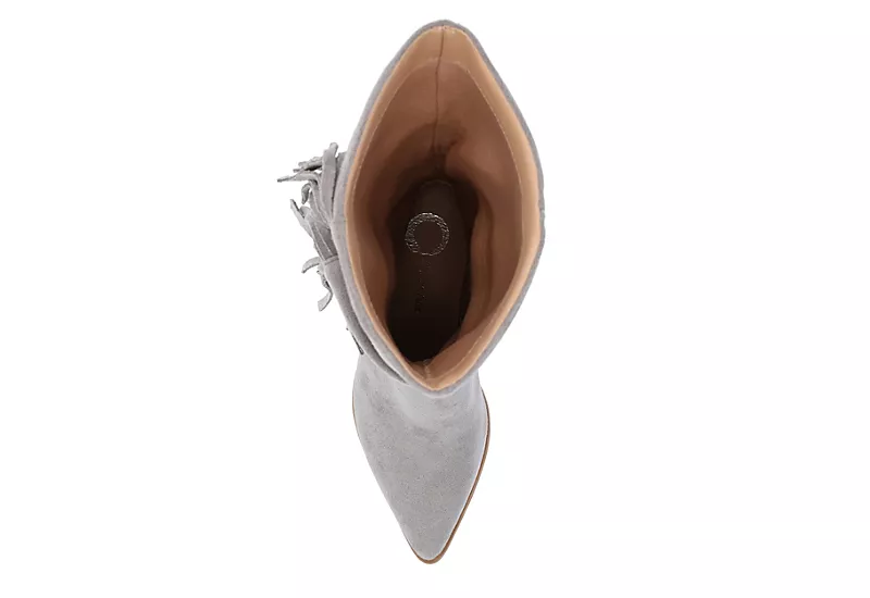 Journee Collection Womens Hartly Fringed Extra Wide Calf Dress Boot – Grey
