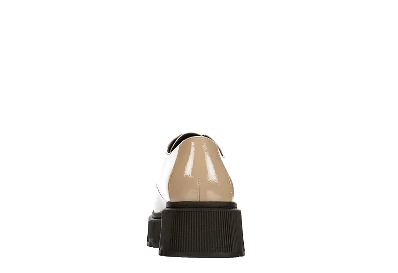 Make a statement in the Trixie women’s oxford from Limelight. With a shiny patent leather upper featuring a round moc toe detail and lace-up closure for a secure fit, this chic oxford effortlessly goes from day to night. A lightly padded footbed offers comfort and cushioning, while the lug outsole provides exceptional grip and traction.