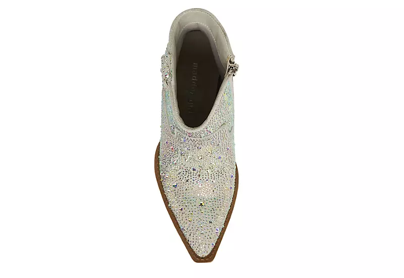 Step up your fashion game with the Jolene women’s Western boot from Madden Girl. With a sparkly rhinestone sequined upper featuring an inside zipper for a convenient fit, this Western boot, with its stylish pointy toe and 3″ block heel, will be an absolute head-turner. A cushioned footbed will soothe your feet, while the synthetic outsole provides excellent grip and stability.