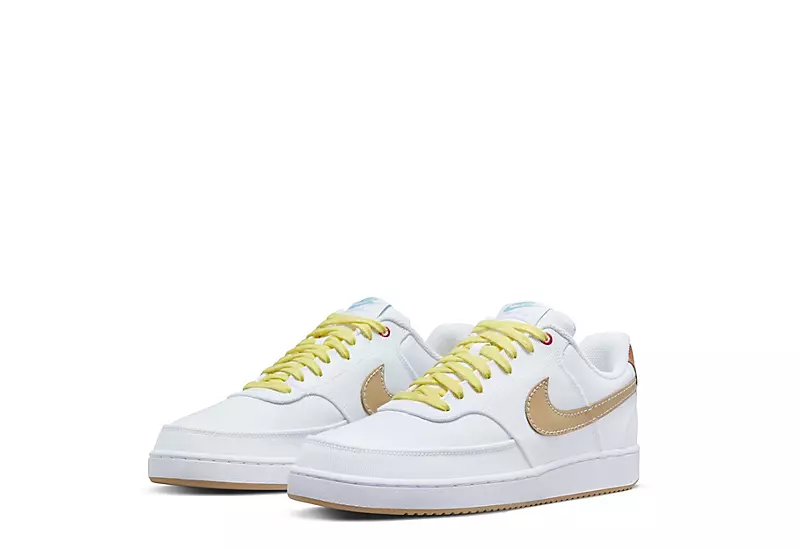 A combination of retro design and modern performance make the Court Vision Low men’s sneaker from Nike a perfect shoe on or off the court. Call back to the ’80s with the leather & synthetic or canvas upper and deep traction outsole. The Nike Swoosh keeps the classic vibe going.