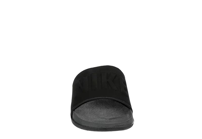 Walk in style to the gym, beach, or anywhere else with this Nike Offcourt S slide. The synthetic upper has a monochromed Nike logo for a sleek look. The contoured footbed will cushion your foot so you stay comfortable all day long.