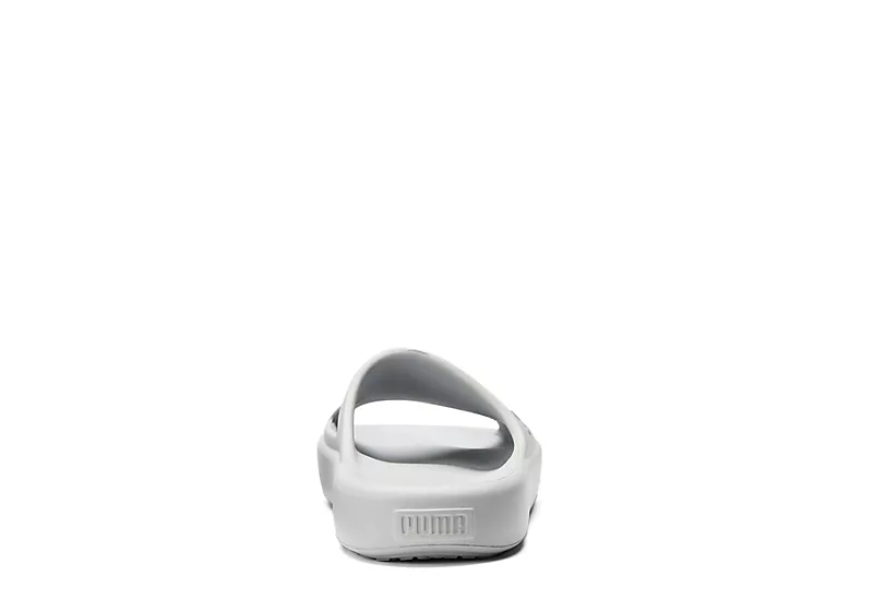 Give her trendy minimalist style with the PUMA Shibui Cat JR girls’ slide sandal. Featuring a one-piece synthetic upper with embedded PUMA Cat logos and a side cutout, this breezy sandal is sure to become a fave. The cozy footbed cradles her foot while the textured outsole offers some traction.