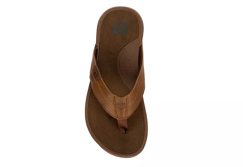Feel your best all-day long with the San Onofre men’s flip flop sandal from REEF. These slip-on sandals feature a durable leather upper with a breathable mesh lining and an anatomically contoured footbed and EVA midsole for added comfort and support. The synthetic tread outsole offers excellent shock absorption and flexibility, making it the perfect wear-anywhere sandal.