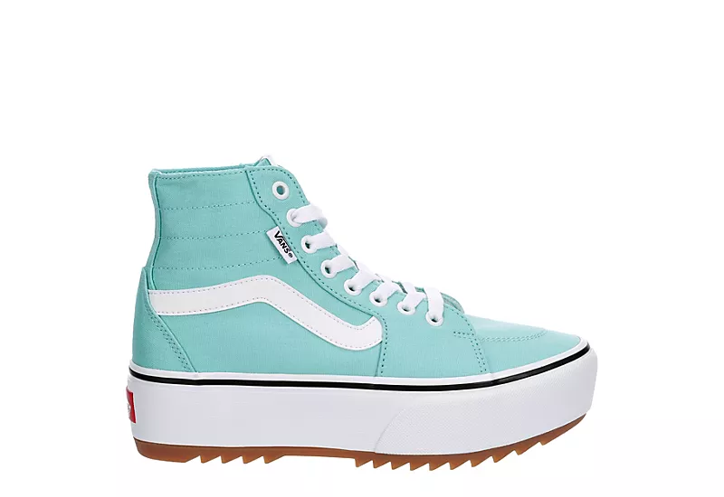 Bring hip to a new level with the Vans Filmore High Top Tapered women’s platform sneaker. With a breathable canvas upper featuring Vans graphics and a platform midsole to stand above the crowd, this lace-up shoe hits its high marks. And thanks to a cushioned insole, padded collar & tongue and sawtooth rubber outsole, you can stroll in casual comfort.